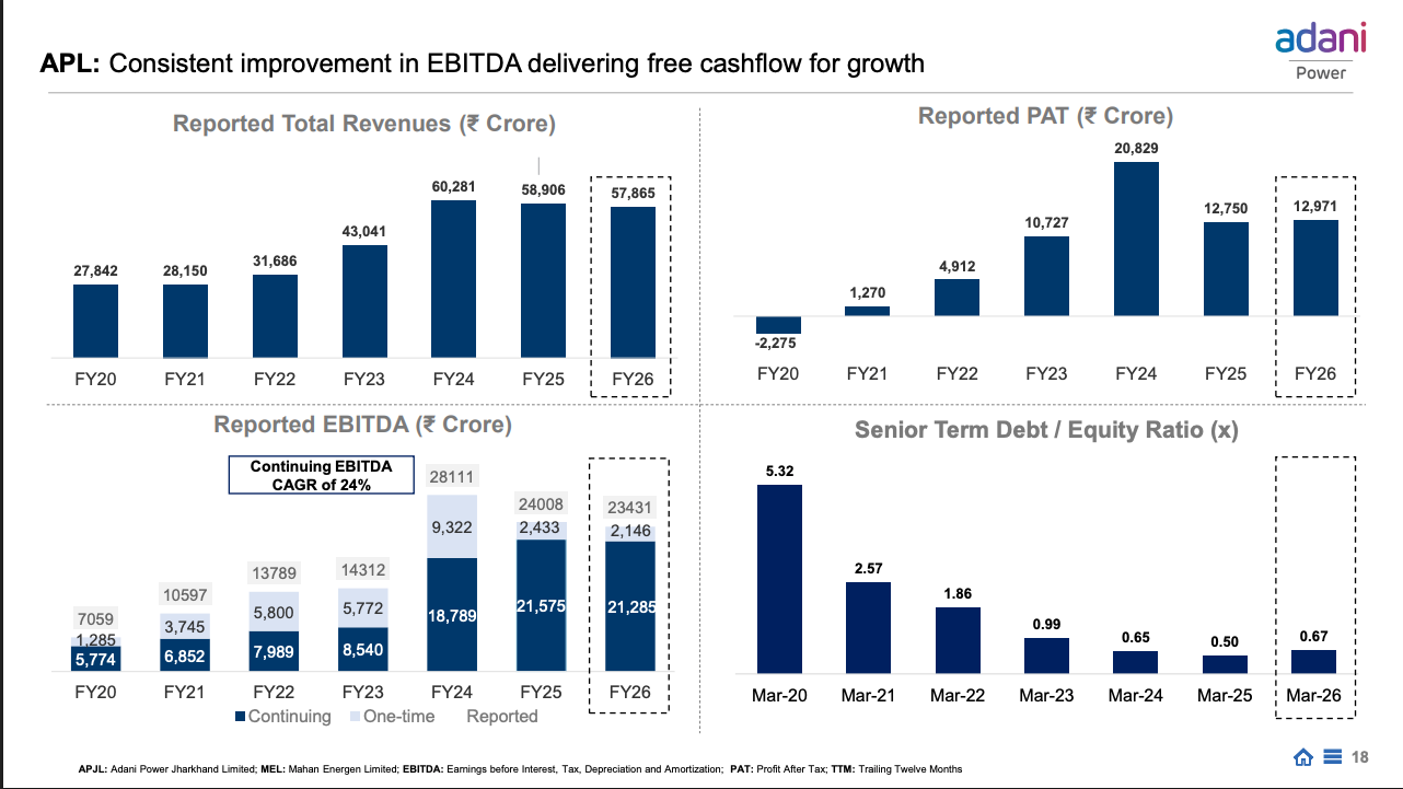 For the March quarter of FY26, Adani Power posted a profit after tax of ₹4,271 crore, up sharply from ₹2,599 crore last year. But the actual business of selling electricity didn’t really grow much.