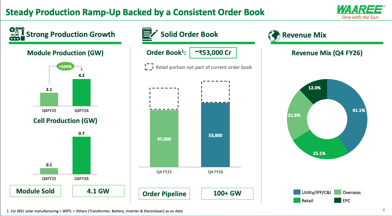 At the same time, expectations were already very high. Waaree has positioned itself as one of the largest non-Chinese solar module manufacturers globally, with around 26 GW of module capacity and a strong order book of roughly ₹53,000 crore.