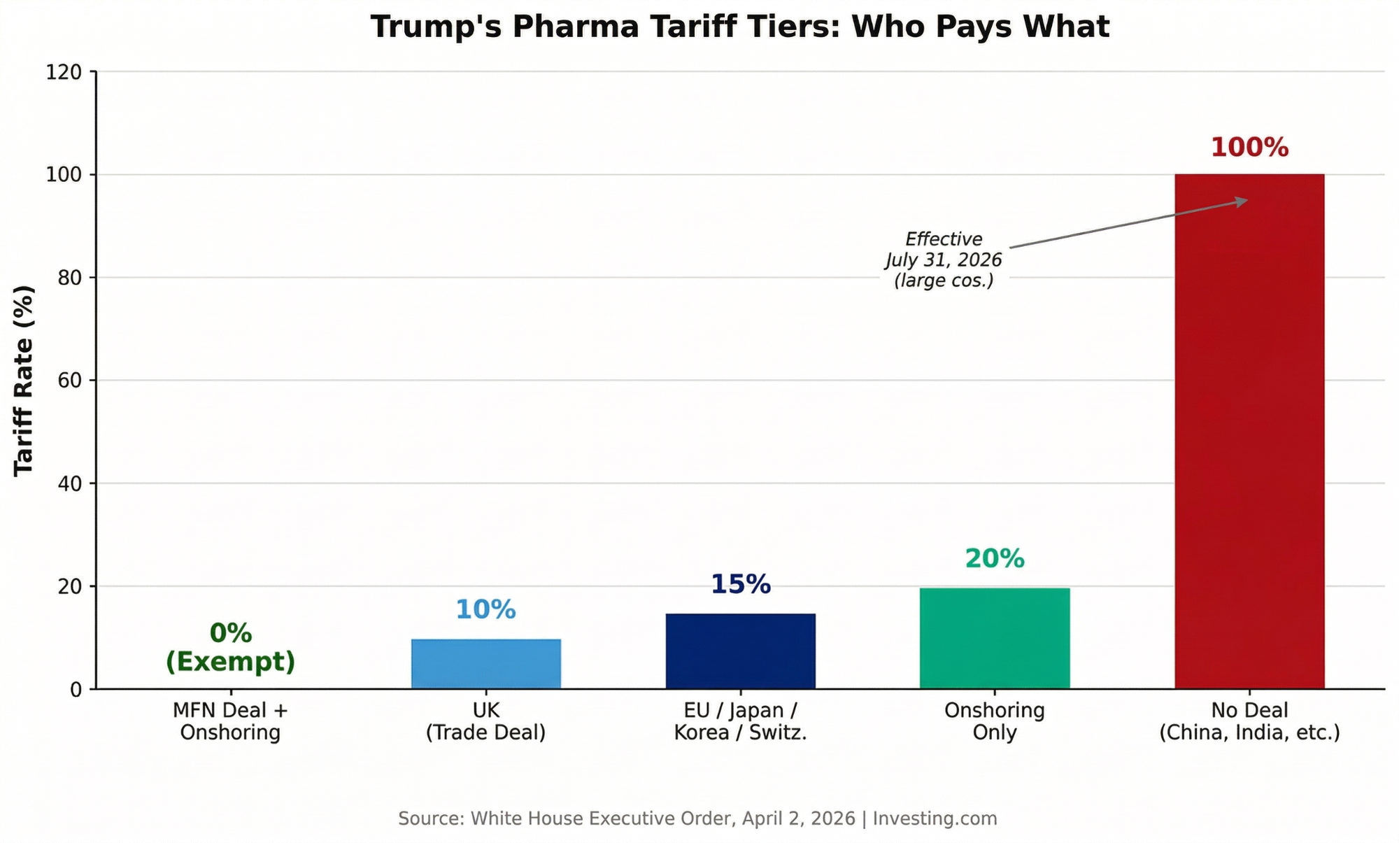 Companies that agree to US pricing rules and shift manufacturing locally will face zero tariffs. Those that don’t could see tariffs start at 20% and rise to 100% over four years.