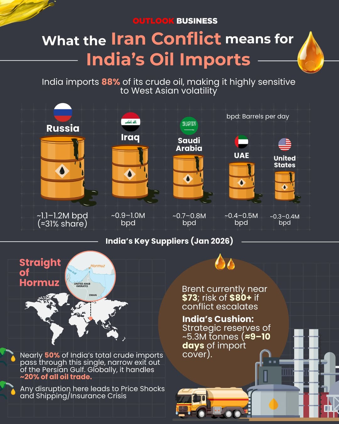 India imports about 88% of its crude oil, and more than half of that comes from the Middle East, much of it sailing through this very route.