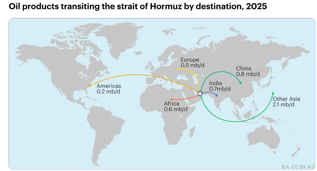 What’s also interesting is that a huge chunk of this energy flows through the Strait of Hormuz, one of the world’s most critical shipping routes. About 80% of the oil passing through it is headed to Asia. In simple terms, this region is where the action is, both in production and global supply.