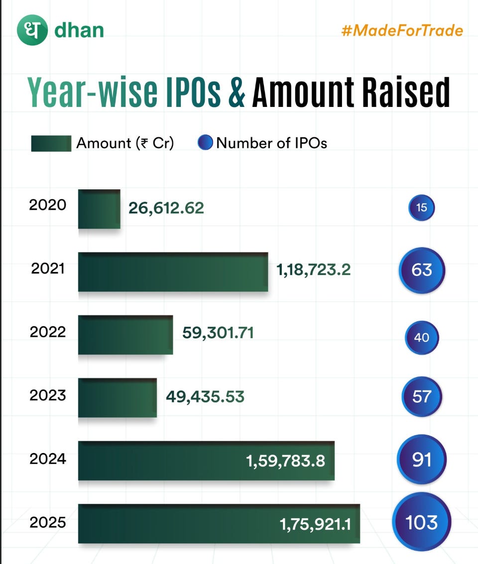 Zoom out: in March 2026, 38 companies filed draft papers with SEBI, up sharply from 22 last year and 16 in 2024.