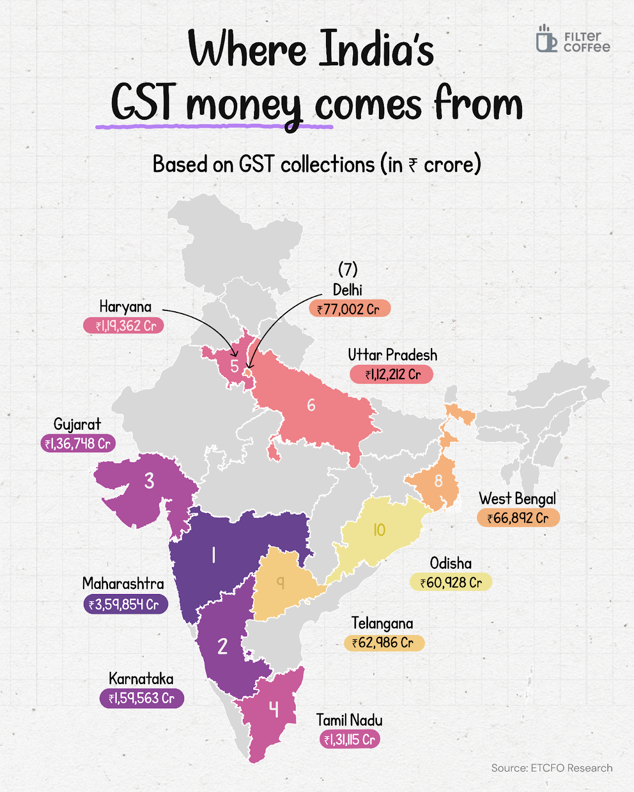 These states are home to major industrial hubs, financial centres, and large consumption markets which means more businesses, more transactions, and ultimately higher tax collections.