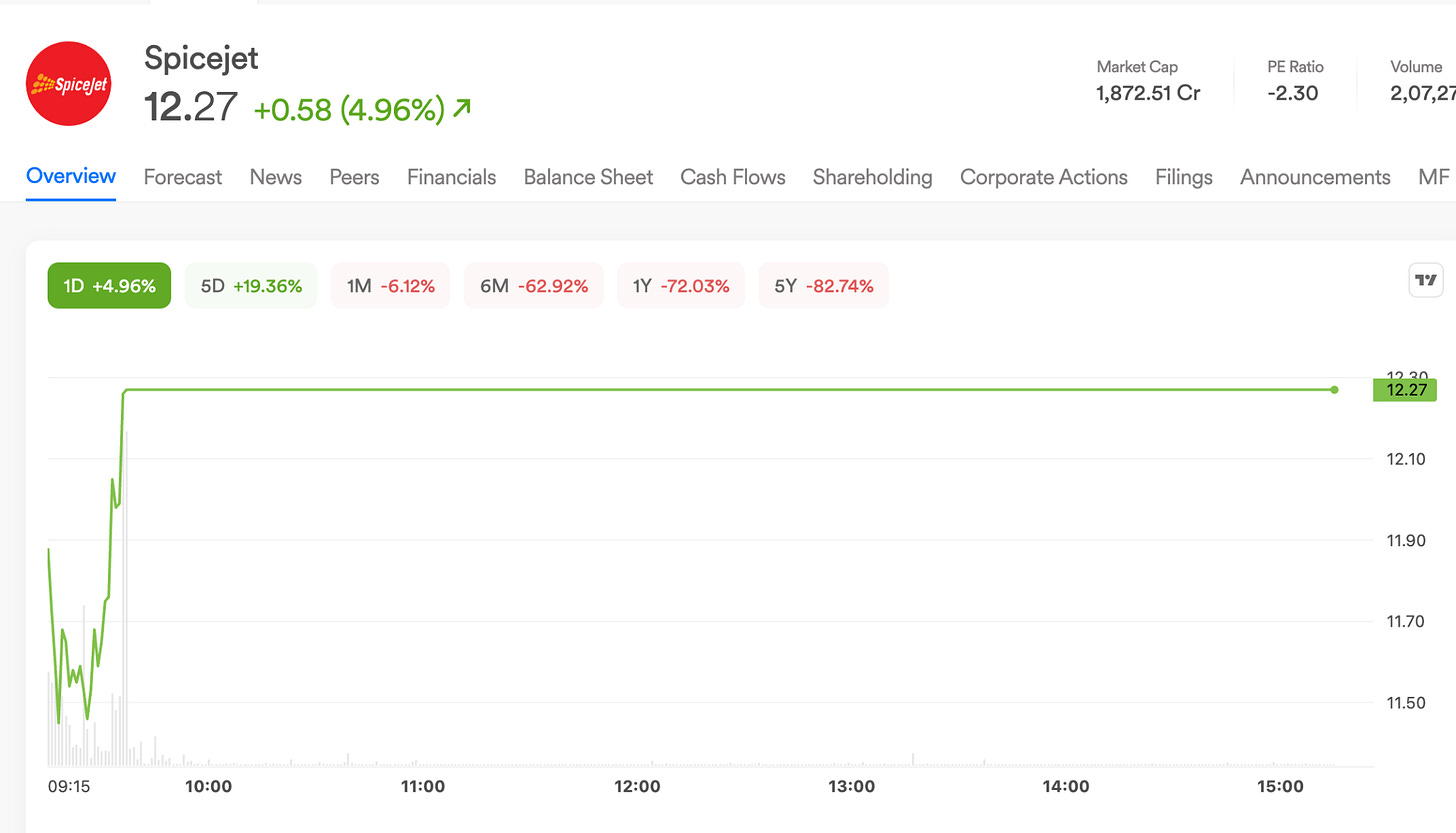 SpiceJet shares were in the spotlight after a UK court asked the airline to pay around $8 million, or about ₹70 crore, to an aircraft engine leasing company.