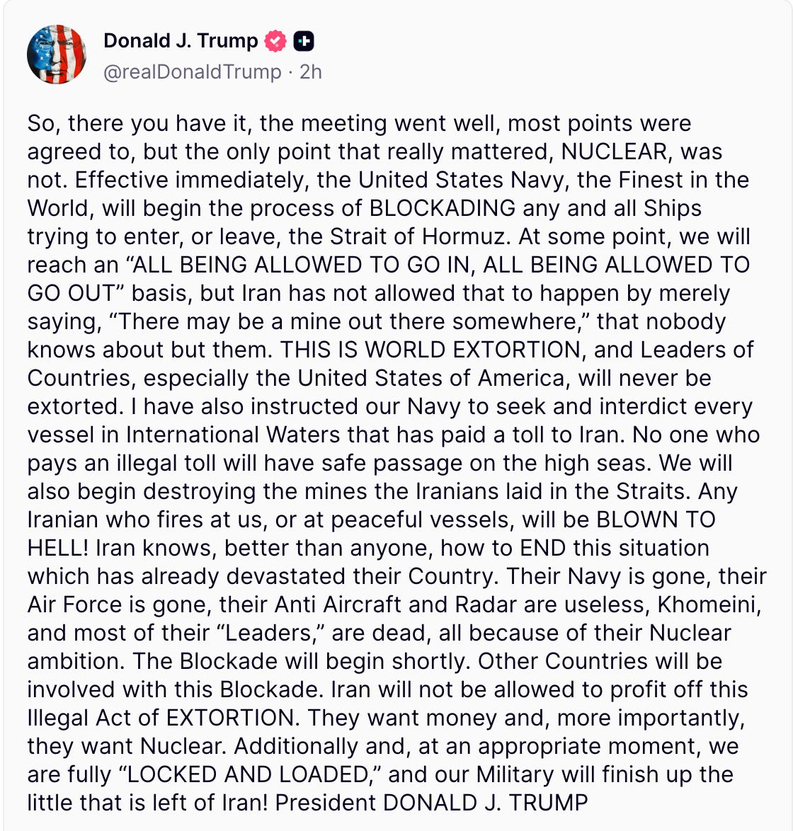 Meanwhile, US President Donald Trump has now announced a naval blockade of the strait, targeting vessels moving in and out.