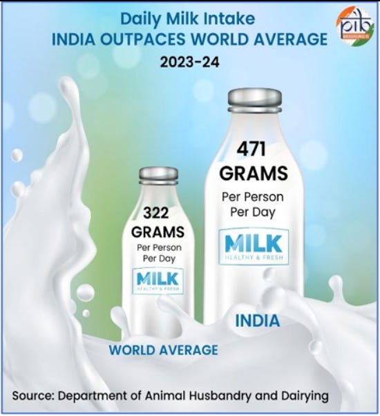Bottomline: India is the world’s largest milk producer, with output rising to 239.3 million tonnes and projected to reach 242 million tonnes in 2026, contributing 32% to global supply.