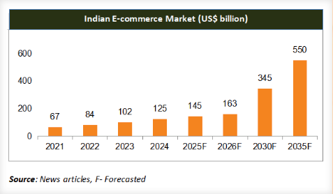 Big theme: India’s e-commerce engine is only getting started. The industry, worth $125 billion in 2024, is on track to hit $345 billion by 2030, clocking a strong 15% annual growth.
