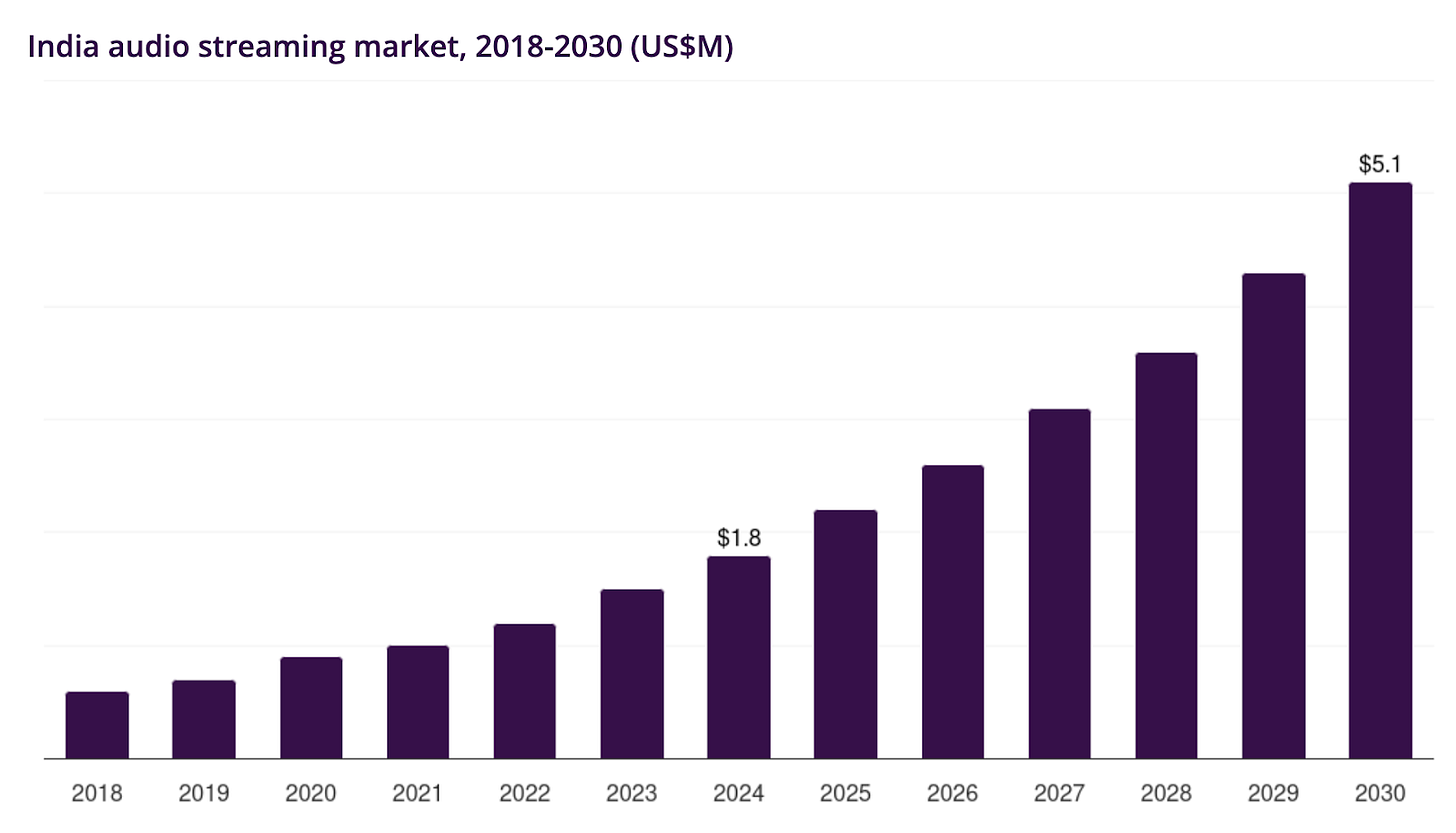Zoom out: Indiaās audio streaming market is also on a growth spurt, rising 18.6%, driven by higher mobile adoption, rising demand for on-demand content, and growing interest in regional formats, placing Kuku FM in a strong position to benefit.