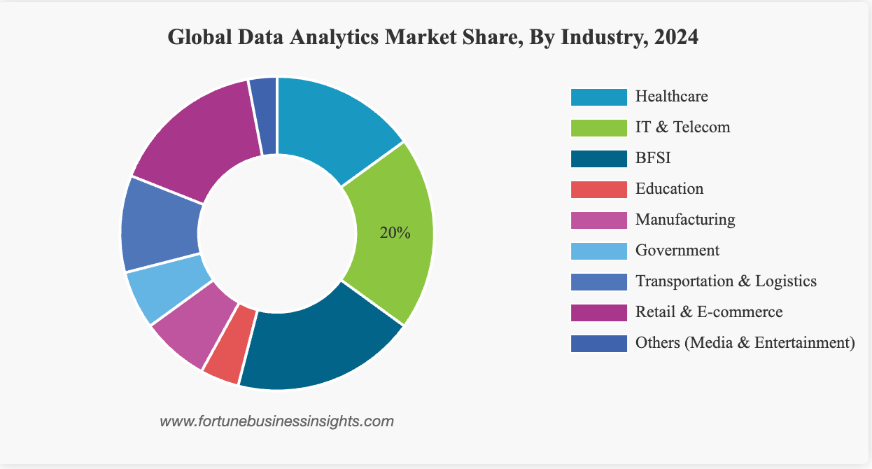 Zoom out: enterprises are racing to turn data into faster, everyday decisions. The global data analytics market is expected to grow from about $82 billion in 2025 to over $400 billion by 2032.