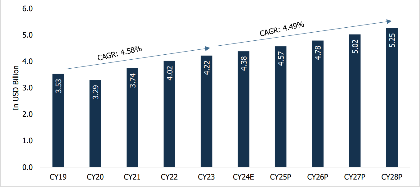 Zoom out: looking ahead, India’s magnet winding wire market is expected to become a $5.2 billion business by 2028. In terms of quantity, the market is expected to reach about 6.7 lakh tonnes by 2028, growing at roughly 4% a year.