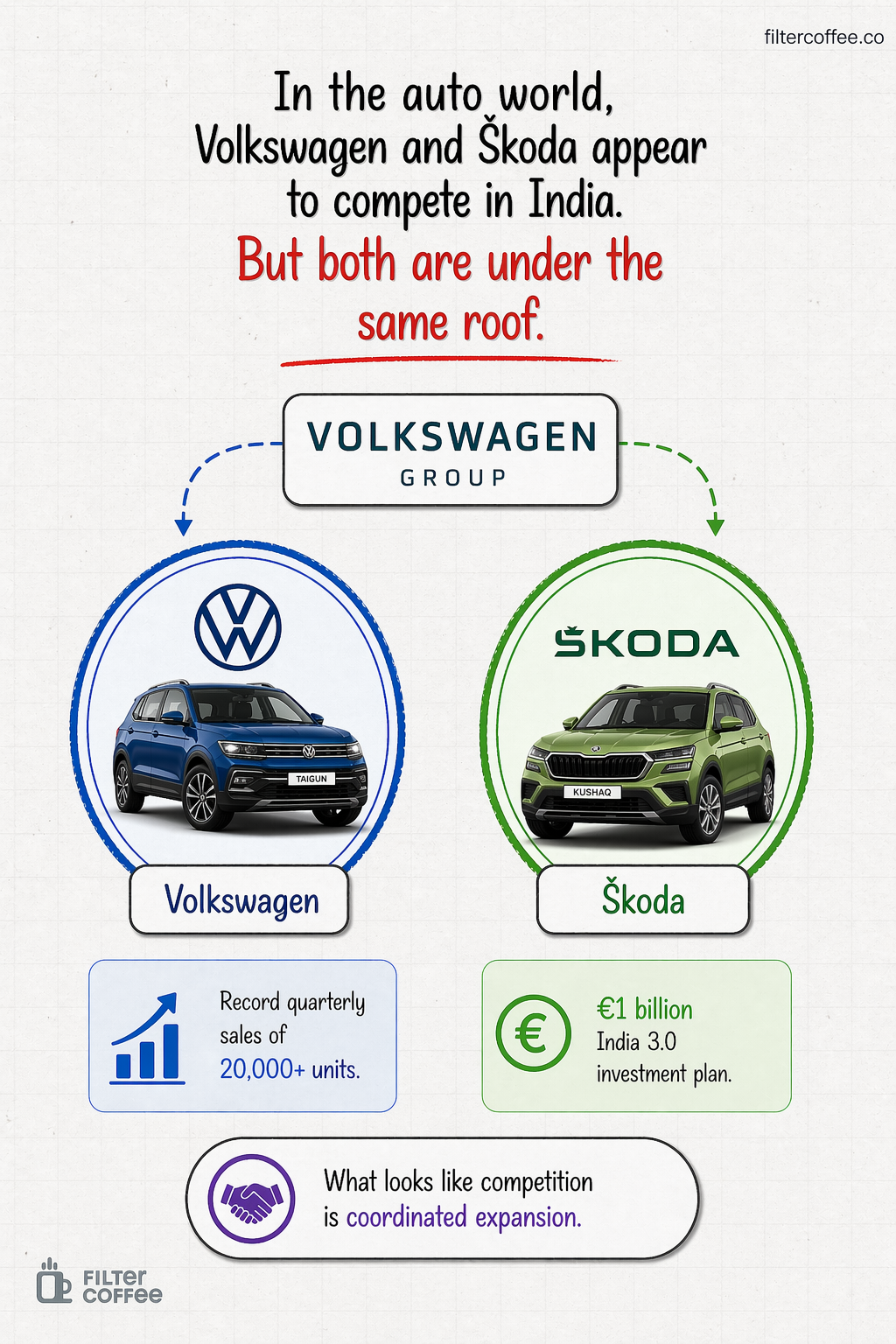 In the auto world, Volkswagen and Škoda appear to compete for similar buyers in India. But both sit under the Volkswagen Group, which is now doubling down on the country.