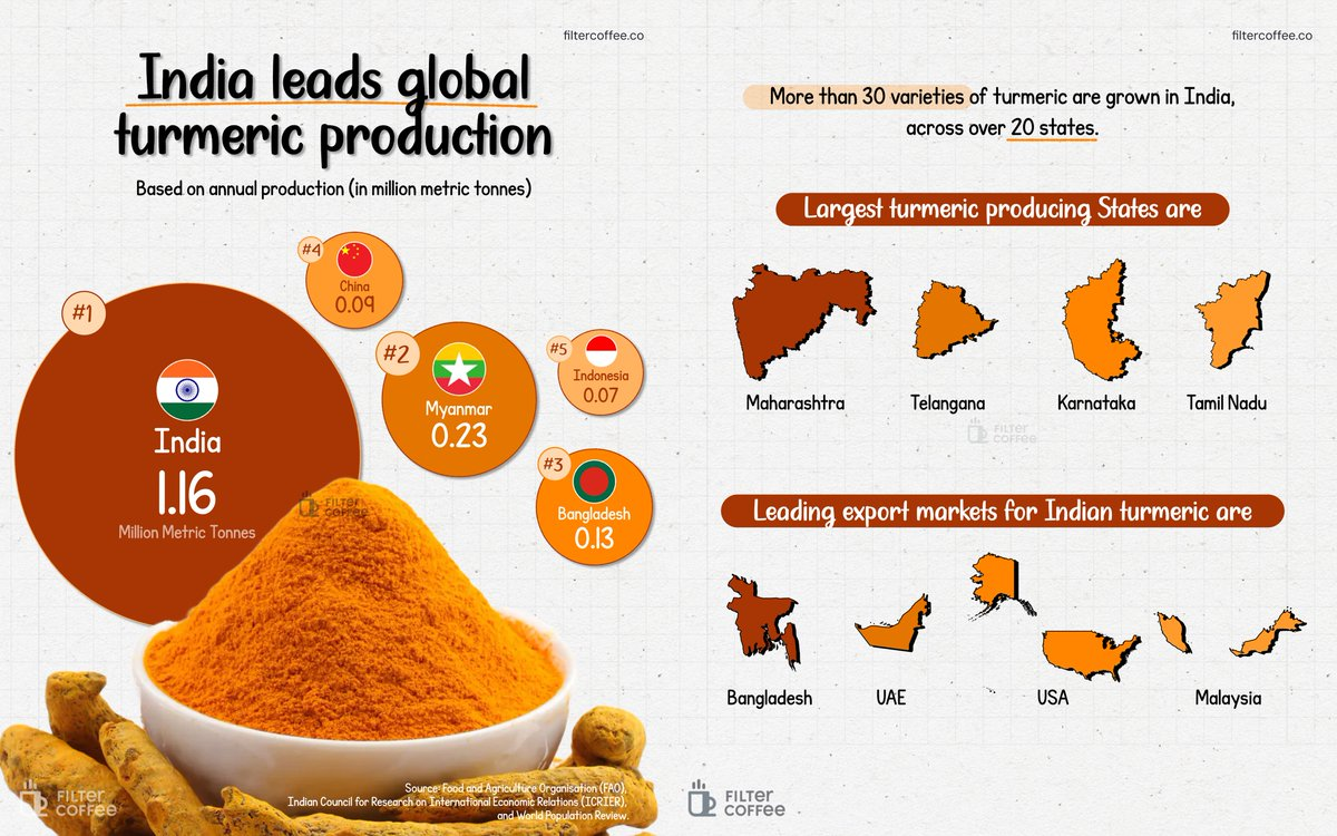 India produces about 1.16 million metric tonnes of turmeric every year, making it the undisputed global leader.