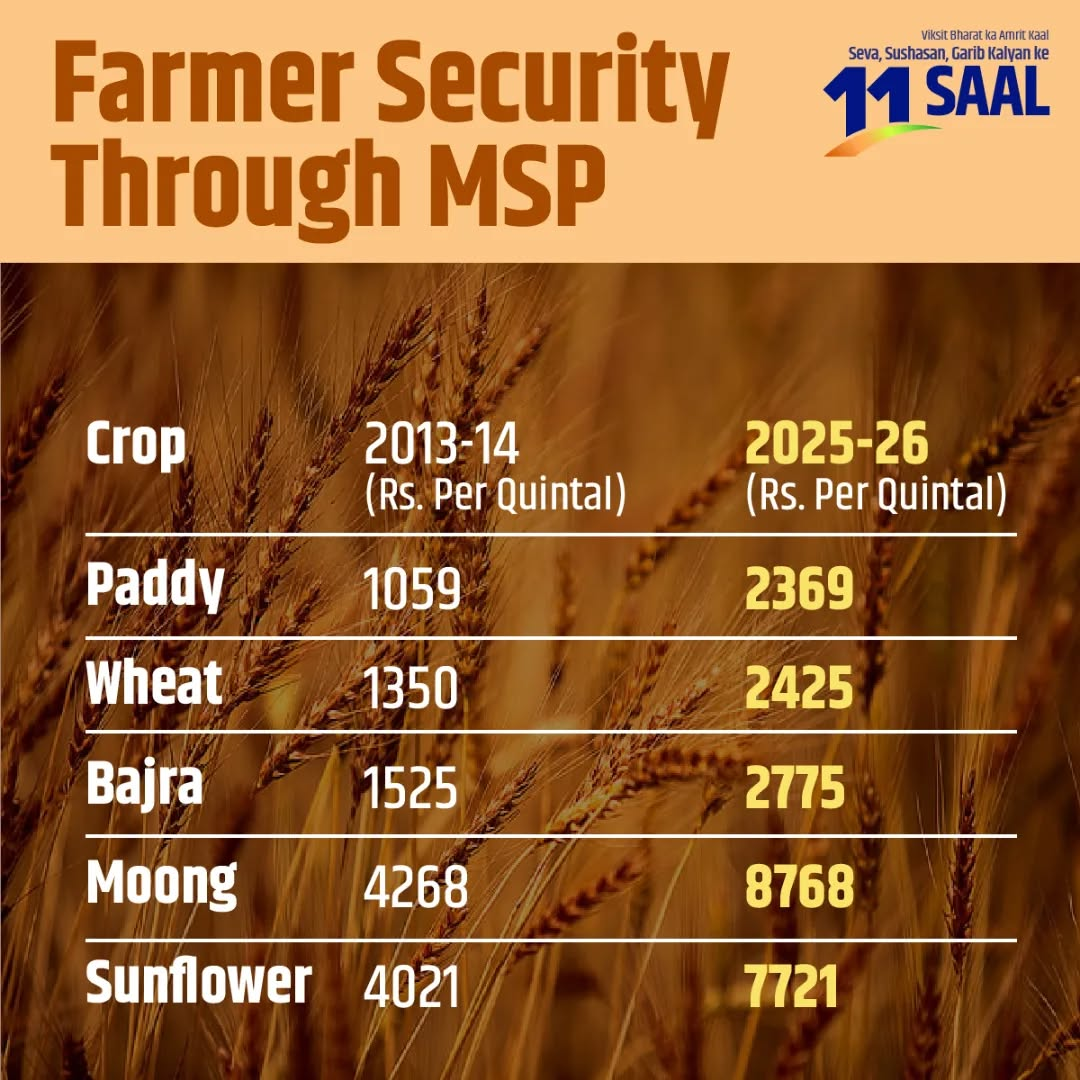 If market prices fall below this level, the government still buys the crop at the announced MSP. This protects farmers from price crashes and guarantees them a basic income for their produce.