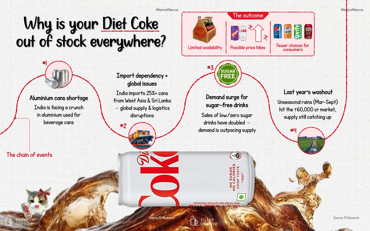 India is facing a genuine squeeze in beverage can supply, and this is hitting products like Diet Coke first because they rely almost entirely on cans instead of plastic bottles or returnable glass.