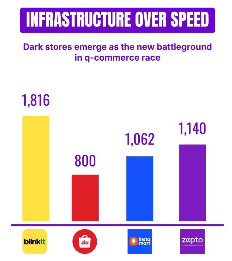 Scale is the second big story. Blinkit crossed 1,300 dark stores and is targeting 3,000 by the end of March 2027. Swiggy’s Instamart has already crossed 1,000 stores across 120+ cities. Zepto is expanding just as aggressively. These “dark stores” small warehouses optimized for fast delivery are the backbone of quick commerce. The more you have, the faster and cheaper you can deliver.