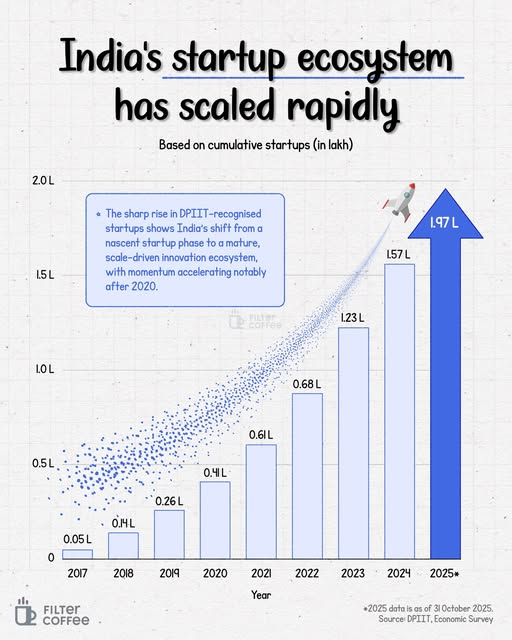 In other words, India’s startup story is gradually transitioning from a volume game to a value game. The rise from a few thousand startups to nearly two lakh within a decade shows how quickly entrepreneurial energy can scale in the right environment.