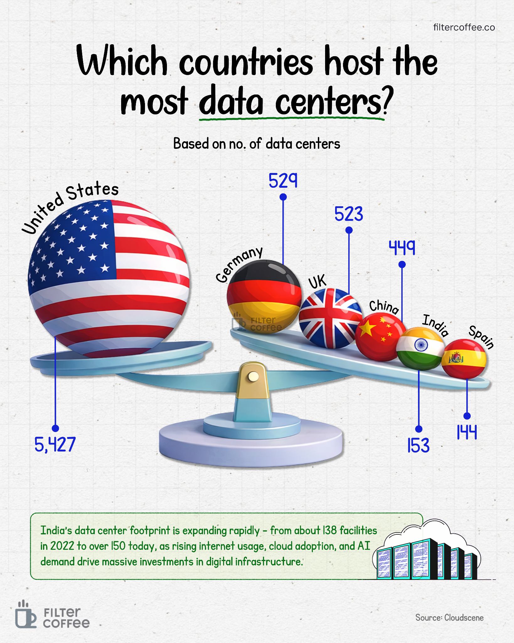 To understand why this matters, start with something simple. The internet is not floating in the air. Every WhatsApp message, Netflix binge, UPI transaction, and ChatGPT query runs through physical buildings packed with servers. These are data centres. Think of them as warehouses for the internet.